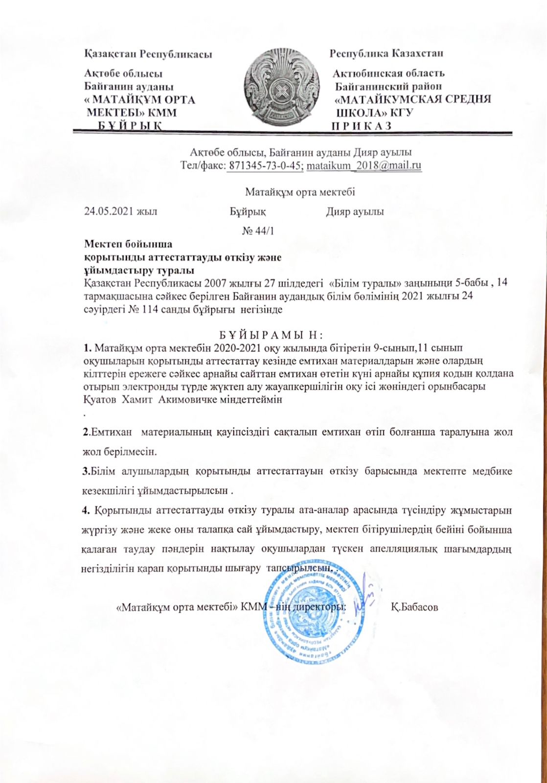 | 1 | 9кл 2020-2021о.ж. емтихан хаттамалары | |